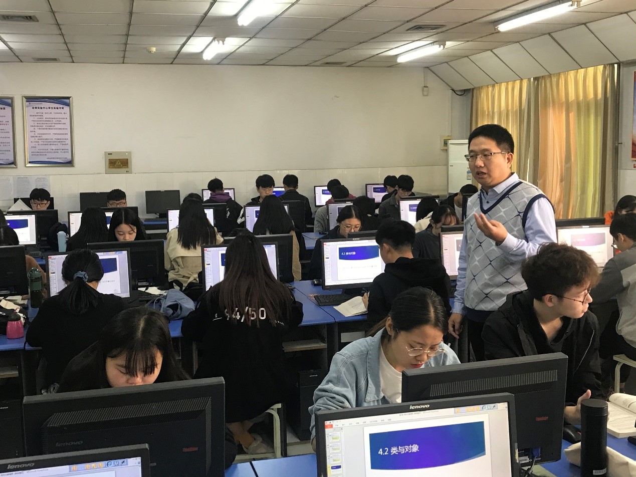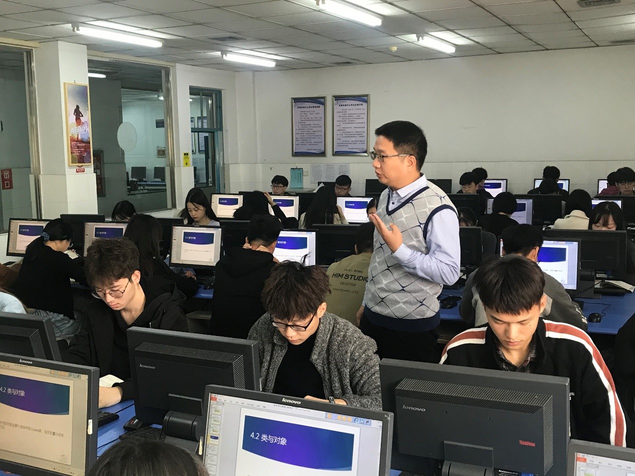 10月29日上午,“精彩一课”系列活动第15讲正式拉开帷幕,我院电子商务教研室的王志辉老师开展了《Java程序设计》课程的“精彩一课”活动,授课主题为“类与对象”。课上,王老师采用翻转课堂、理实一体及边学边练的教学理念与方法,促使学生在课堂时间内有效、充分的学习如何创建类与对象。课后,王老师与学生进行互动,对学习内容提出进一步要求,并同教研室老师共同探讨如何讲好一门技术课程。