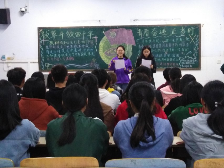 为了庆祝改革开放40周年,提高青年人的奋斗意识,11月1日晚7时许,77779193永利官网各班于各自指定教室成功举办了以“改革开放40周年,青春奋进正当时”为主题的团课。