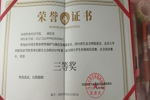 为树立同学们的环保意识,加深同学们对环保知识的理解,6月1日至6月5日,全国环保知识竞赛决赛如期举行,河南牧业经济学院四人挺进决赛。