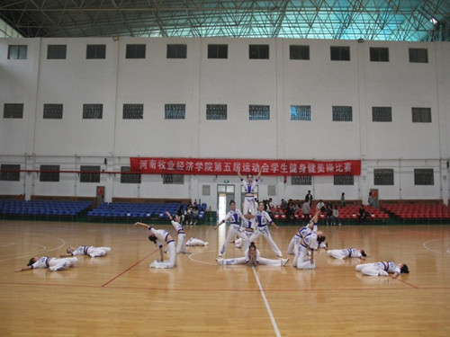 为了锻炼学生的身体和心理素质,丰富大学生校园生活,展现大学生青春靓丽的风采,10月13日上午11点40分,河南牧业经济学院在体育馆进行了第五届运动会学生健美操大赛,物流与电商学院健美操队员们参加了本次比赛。