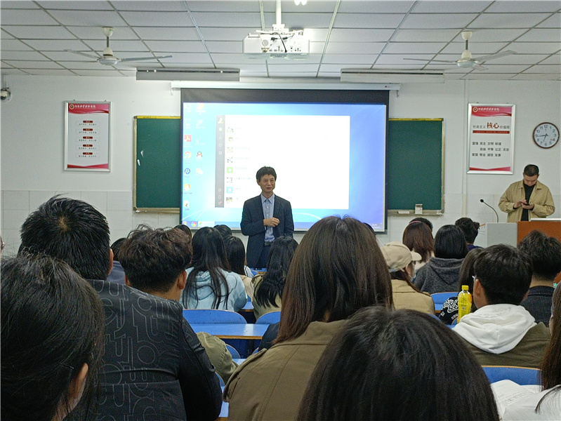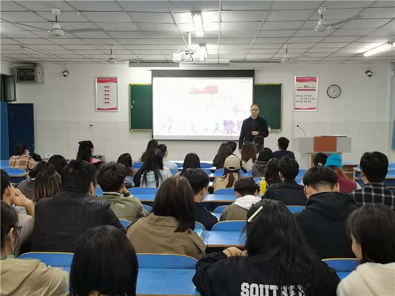 会前,就业专干刘阳老师组织同学们入座并与同学们积极沟通,希望切实了解同学们就业需求以便做好下一步的企业招聘的对接工作,更好的服务毕业生的就业需求。在热烈的掌声之后,曹院长向大家介绍两家企业的招聘负责人,此次来院宣讲的两位企业负责人都是从我校毕业的学长,两位学长在自己的岗位上勤劳奋斗、闪闪发光,如今回到学校助力学弟学妹们早日找到心怡工作。首先最后五公里:谋业者的负责人常百保学长向我们介绍了他的公司—杭州最后五公里科技有限公司,秉持着天下事无难易,不为则难,为之则易的人生格言坚持带领企业走中高端业务+优质服务路线,因地制宜制定司机定人定区服务,在杭州末端配送占有自己的一番天地。云众物流高管黄冠翔学长说文解字向我们介绍了何为云众—云技术是指在广域网或局域网内将硬件、软件、网络等系列资源统一起来,实现数据的计算、储存、处理和共享的一种托管技术;众字,初文始见于商代甲骨文,其古字形像多人在烈日下劳动,本义是许多人,引申为许多,坚持做一家有温度的物流企业,独特的运营方式,吸引在座毕业生,同时黄冠翔学长向大家发出邀请函,希望大家来实地参观并加入他们成为并肩作战的战友。