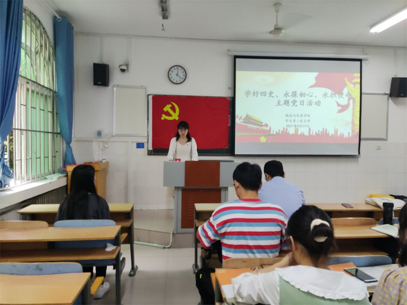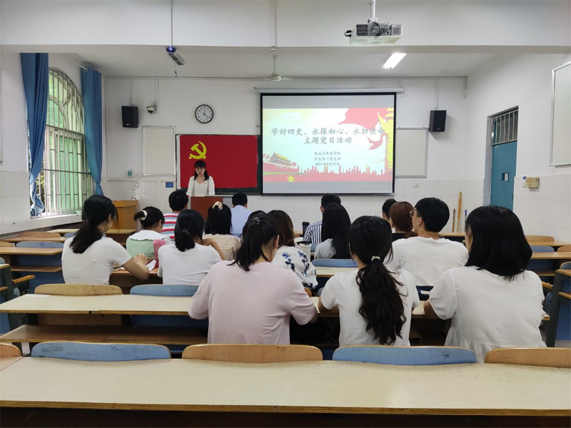 活动伊始,由学生第二党支部书记刘阳老师发表讲话,阐述党日活动学习对党支部和党员发展的重要性,并带领学生们共同学习“学好四史,永葆初心、永担使命”的内容。她指出“学习四史”教育,目的在于通过历史的教育深刻认识中国为什么选择马克思主义、为什么选择中国共产党、为什么选择中国特色社会主义道路,建立对我们国家政治制度和社会制度的历史认同和政治认同。之后党小组长杨奇奇老师依据讲话内容发表了自己的感悟,同时对学生党员提出了自己的殷切希望,教导学生党员们要肩负起自己作为一名党员的责任和义务。接下来,学生党员们踊跃上台发表自己的看法和见解,促成了本次党日活动圆满结束。