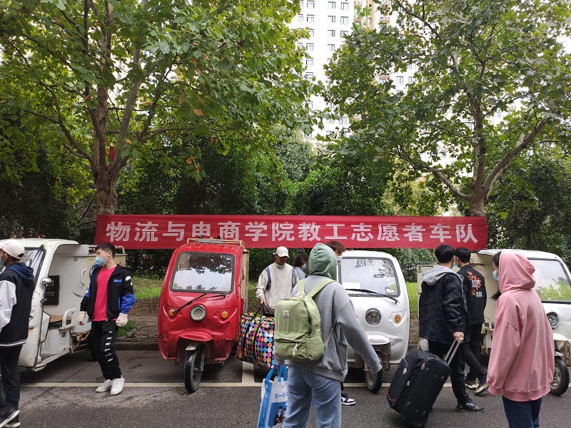 由于防疫期间校园实行封闭式管理,根据学校的相关要求,校外私家车辆和家长等陪同人员一律不能进入校园。针对这种情况,我院开展“爱心车队”志愿服务行动,成立学院教职工志愿者服务车队。老师们早早等候在指定位置,并当起了“引导员”、“搬运员”、“托运员”,把学生和他们随身携带的行李物品运送至宿舍。这个特殊的团队成为了77779193永利官网一张闪亮的名片,打消了家长的担忧,为返校的学生们带来了“回家”的归属感。