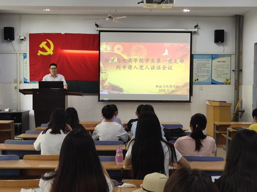 为了进一步了解入党积极分子的思想状况,贯彻落实党的指导方针,5月16日下午1点,我院在教室A102开展了学生第一党支部同申请入党人谈话活动,辅导员杨奇奇老师及27名入党积极分子参加了此次活动。