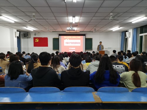 开班仪式结束后,由于书记为大家展开以“党的性质和根本宗旨”为主题的培训。首先,他深入剖析了中国共产党“全心全意为人民服务”的宗旨,之后讲解党的性质,并结合一些典型事例。之后于书记讲述在疫情期间所了解到的一些国内抗疫的事迹,让同学们感受祖国如今的强大。于书记讲解生动有趣,为同学们上了一节意义非凡的党课,希望新一批积极分子们能够认真学习党的理论知识,提高自己的党政理论素质,争取早日加入党组织。在同学们的热烈掌声中,本次党课圆满结束。