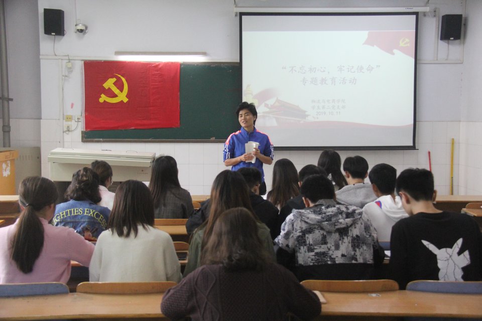 活动开始,由第二党支部书记王玉香书记带领大家学习《习近平新时代中国特色社会主义思想学习纲要》,在她充满感情的朗读之下,同学们认真地做着笔记,安静地聆听着党的教诲。前半部分结束后,由尚津老师起立继续带大家学习后半部分,尚津老师进行了经典诵读,她的诵读得到了同学们的热烈掌声,随后便是由学生党员代表寇梦钰进行发言,她向同学们分享了自己国庆期间看阅兵的感受,看完了整个阅兵式,她的心情只能用震撼来形容,人民子弟兵铿锵有力的步伐、轰隆隆驶过的现代化装备、凌空翱翔的战鹰,无不展示着祖国的强大。她的话语中充满了一种民族自豪感,发言完毕后也获得了老师和同学们的阵阵掌声。最后王玉香书记做出总结,强调了脚踏实地做事的重要性,并对于党不忘初心牢记使命的信念进行进一步贯彻,言语中充满着深刻的民族认同感,本次活动也在同学们热烈的掌声中结束。