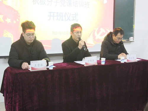 开班仪式在庄严肃穆的奏唱国歌中拉开了序幕。会议开始,于晓胜书记首先对第二期入党积极分子表示热烈欢迎,同时也向同学们强调要积极学习掌握党的一系列理论知识,做合格的接班人、领路人,并在行动上思想上积极向党组织靠拢,洞悉时代发展变化规律,深研中国十四五发展规划,发挥先锋表率作用,响应时代号召投入到社会主义伟大工程中去。接着,陈永刚书记宣读了本次培训活动的时间、对象、形式、课时安排、纪律要求、学院培训考核等方面的规划与章程,并表示此培训方案将党章与实际相结合,充分体现了先进性、时代性。最后,开班仪式在同学们的热烈的掌声中圆满结束。