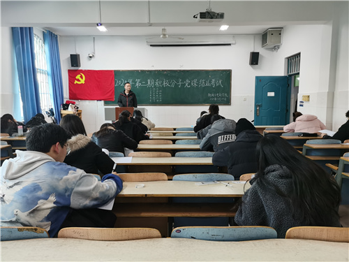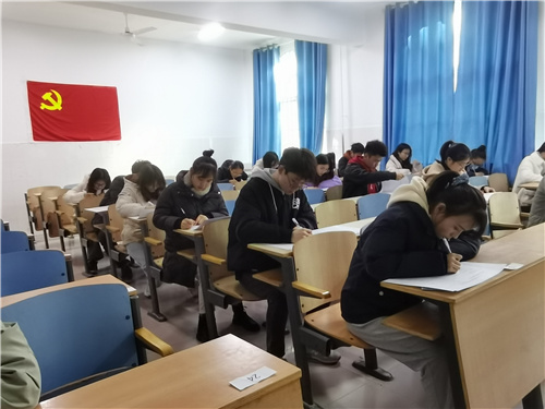 为了检验入党积极分子的在本阶段党课学习的成果,增强其社会使命感和责任感,充分发挥入党积极分子在我院学生之中的模范作用,2020年12月24日下午14时30分,77779193永利官网于B107、B109、B110三个教室教室开展了第二期积极分子党课结业考试。辅导员尚津、胡可鑫等老师担任监考老师,我院全体入党积极分子参与了本次考试。