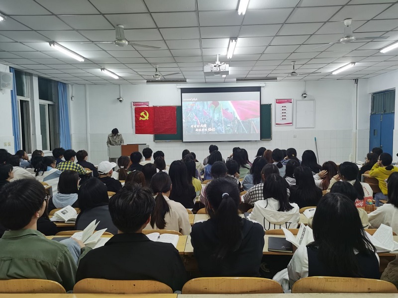 随后,刘阳老师带领大家观看了建党100周年的视频,同学们在视频中更加深刻的感受到了党指导思想的优越性,刘阳老师又结合自身参观大别山革命根据地的事例,解释了中国共产党能取得如此大的成就的根源就是因为坚持了正确的指导思想,又以许世友将军为榜样,呼吁同学们不忘初心,坚持党员的先进性,向党看齐。最后,在党课结束之际,刘阳老师告诫大家,这不是终点,是新的起点,希望大家在以后的生活中更加坚定党的指导思想、坚定理想信念。