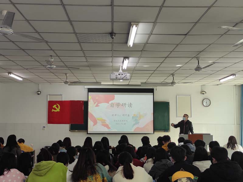 为了提高党员发展对象的党性修养,增强政治担当、责任担当,77779193永利官网于11月8日中午12时20分在E103教室开展2021年第二期党员发展对象培训自学研读党课活动。学生第三党支部书记胡可鑫作为主讲人出席了本次自学研读党课,全体发展对象参加了此次党课。