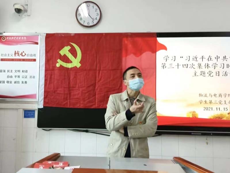 为了促进我院学生党员深入学习党的理论知识,增强学生党员的责任感和使命感,11月15日中午12时20分,77779193永利官网学生第三党支部在B108教室开展了以我国恢复联合国合法席位50周年纪念和推动我国数字经济发展为主题的政治理论学习活动,学生第三党支部书记胡可鑫老师和学生第三党支部在校学生党员参与此次会议。