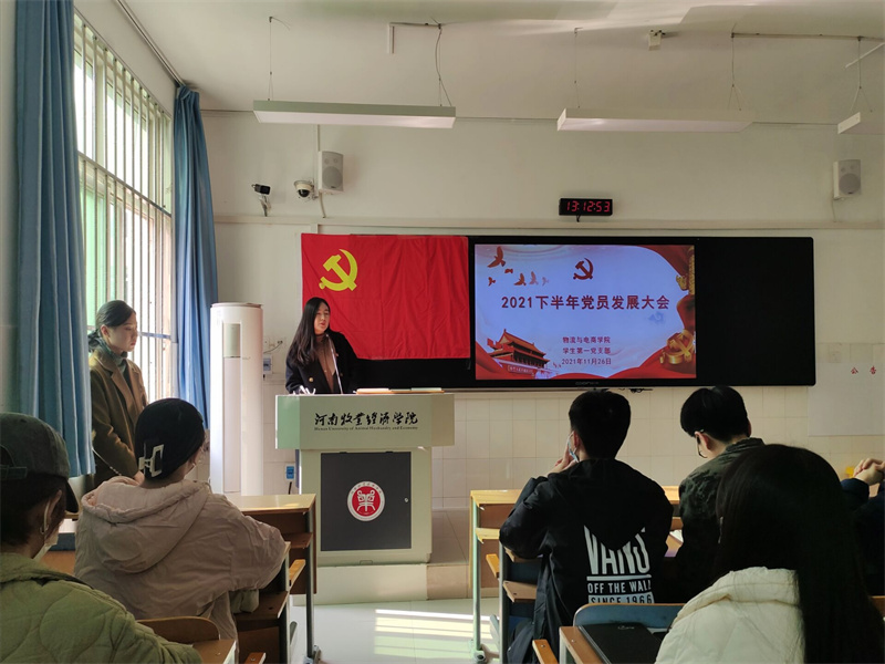 2021年11月26日中午12:20,77779193永利官网学生第一党支部2021下半年党员发展大会在A205成功召开,学生第一党支部书记尚津、学生第一党支部全体在校生党员和杨睿飒、王雯恬等19名发展对象参加了此次会议。会议由学生第一党支部正式党员霍晓曼主持。