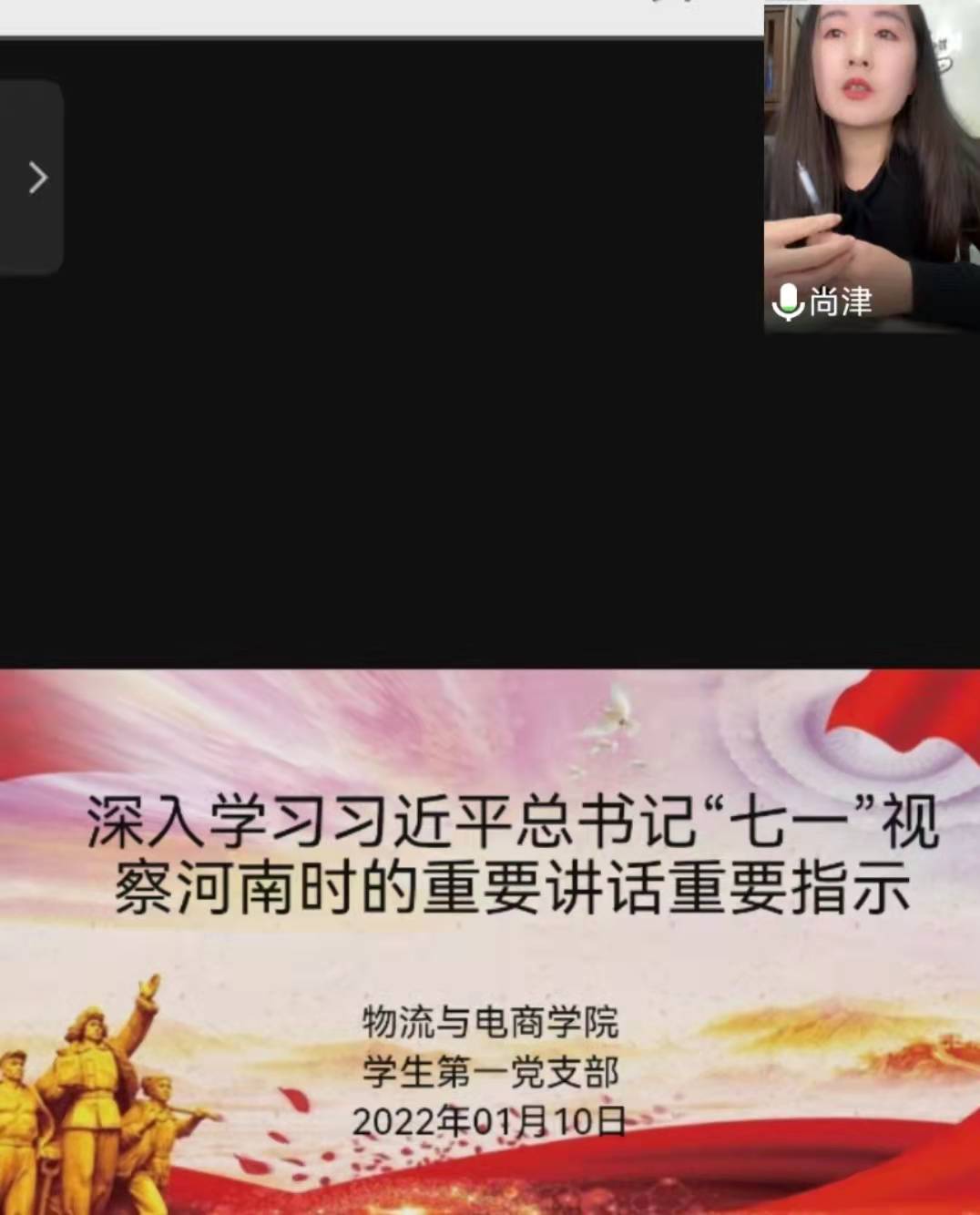 2022年1月10日晚上19:00,根据《学校关于召开2021年度基层党组织组织生活会和开展民主评议党员的通知》要求,77779193永利官网学生第一党支部在腾讯会议上成功召开专题学习研讨会,学生第一党支部书记尚津、第一党小组长王雪冰、全体党员参加了此次研讨会,会议由学生第一党支部宣传委员王雯恬主持。