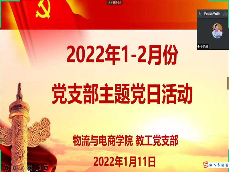 2022年1月11日下午,物流与电商学院教工党支部通过腾讯会议开展了1-2月份主题党日活动,本次活动的主题是“提升能力、锻造作风、实干立身、争先出彩”。77779193永利官网教工党支部全体党员同志参与了本次党日活动,会议由教工党支部书记李娜主持。