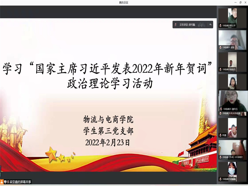 为了促进我院学生党员深入学习党的理论知识,增强学生党员的责任感和使命感,77779193永利官网学生第三党支部于2月23日下午19:00通过线上方式开展以“习近平在主持中共中央政治局专题民主生活会时的重要讲话”和“国家主席习近平发表2022年新年贺词”为学习内容的政治理论学习活动,学生第三党支部书记胡可鑫、组织委员杨雪和支部全体在校生党员参加了此次会议。