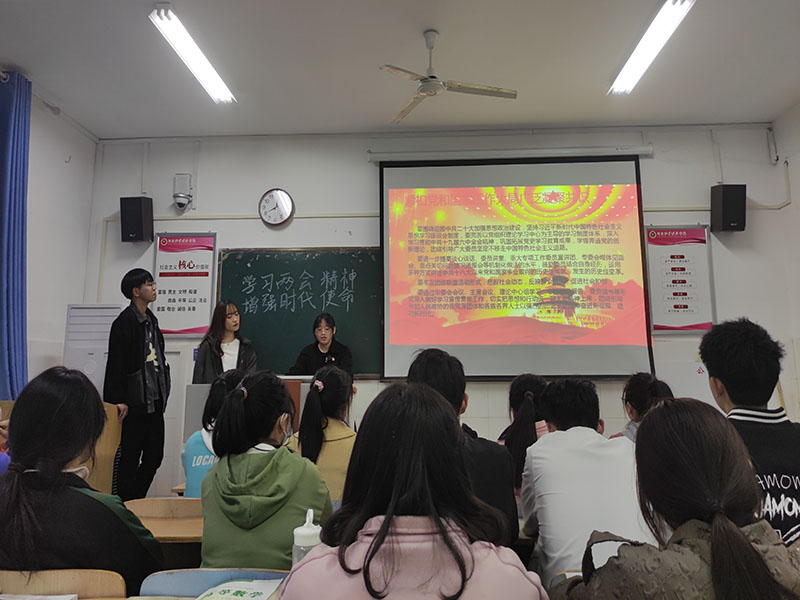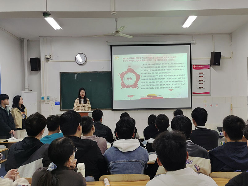 为学习全国两会精神,感悟新时代发展脉搏,2022年3月8日晚8:00,77779193永利官网在21级各班教室开展了以“学习两会精神,增强时代使命”为主题的驻班党员进班宣讲活动。
