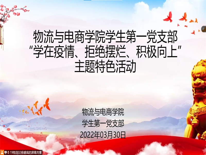 为激发疫情防控下党员们学习、生活、参与活动的积极性,促进其身心健康发展,营造良好的党内学习氛围,充分发挥基层党组织战斗堡垒作用和党员先锋模范作用,77779193永利官网学生第一党支部于3月30日晚19:00在腾讯会议开展“学在疫情、拒绝摆烂、积极向上”线上学习交流分享会。学生第一党支部书记尚津、党小组长王雪冰和在校生党员参与了此次会议。本次会议由组织委员杨睿飒主持。