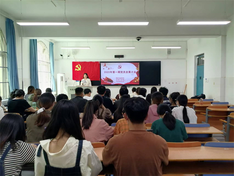为做好党员发展工作,夯实党支部工作基础,77779193永利官网学生第二党支部于9月23⽇中午12:20在A103教室召开了2022年第一期党员发展大会。学生第二党支部书记刘阳老师出席了本次会议,学生第二党⽀部全体在校生党员及10位党员发展对象参加了此次会议。