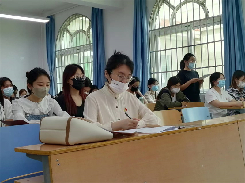 会议伊始,全体起立,奏唱国歌。接着由侯云浩、吕宏基等10位发展对象依次宣读转预备申请书,汇报自己对党的认识、⼊党动机、本⼈履历、家庭及主要社会关系,他们真切地表达了对党的热爱并表⽰在将来的学习生活中将坚定不移地听党话、跟党走,做到与国家和民族同呼吸、共命运,为共产主义事业奋斗终身。在他们依次宣读完转预备申请书后,会议经正式党员无记名投票,通过了侯云浩、吕宏基等10名同学的转预备申请。随后,支部书记刘阳老师进行了发言,她对这一批新发展预备党员表达真挚祝贺的同时也提出了对他们的期望。首先,希望他们继续认真学习党的纲领和党的章程;其次,要密切联系群众,了解群众,服务群众,与同学们多多进行交流;最后,要求新发展预备党员们要认真学习专业知识,不断提升党员素养。大会最后,由宣传委员靳春燕带领新发展预备党员进⾏⼊党宣誓。