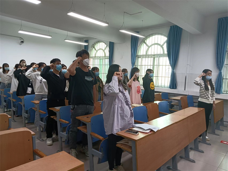 会议伊始,全体人员起立,奏唱国歌。紧接着,各位发展对象对支部大会依次宣读了各自的转预备申请书,汇报了对党的认识、入党动机、本人履历、家庭和主要社会关系,并真切地向支部大会表达了自己强烈的入党愿望。同学们依次宣读完毕后,由老师、在校生党员对发展对象进行无记名投票表决,同意豆欠欠、邵新茹等7名发展对象成功中共预备党员。随后,支部书记尚津老师进行讲话,对豆欠欠、邵新茹等7名新发展预备党员进行祝贺,并表达了对新发展预备党员的期许,强调无论是新入党员还是老党员,都要发挥党员的旗帜与榜样工作,为广大师生服务,加强自我要求,不断提高自己的思想认识与业务水平。最后,学生第一党支部全体新发展预备党员起立,宣读入党誓词,他们声音洪亮、慷慨激昂,展现出了对党的崇高敬意。