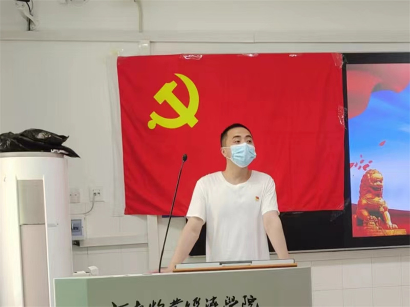 党课开始,胡可鑫表示从一个普通学生,成长为一名光荣的共产党员,这是一个质的飞跃,不但要在组织上入党,更要在实践中不断地加强党性锻炼和党性修养,积极发挥党员的先锋模范作用,在思想中入党。接着向同学们讲述了《政府工作报告》、《中华人民共和国国民经济和十四个五年规划和2035远景目标纲要》,同学们感触颇深。通过此次学习,提高了同学们的党性修养,全面认识了解了政府工作报告,对新形势下的党的建设有了更深的理解。会议最后,胡可鑫向同学们表达了希望,希望同学们能够跟紧党的步伐,早日加入党组织。