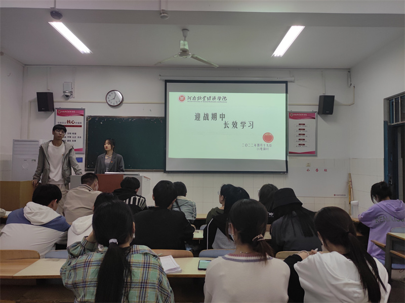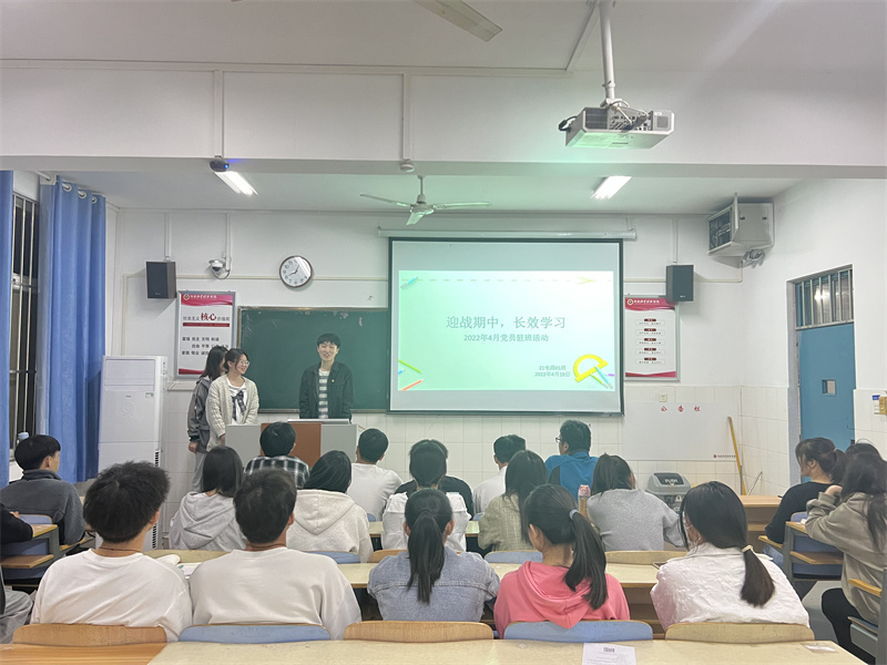 为迎战期中考试,帮助同学们解决复习中的困难,77779193永利官网于4月19日晚20:00在21级各班开展了“迎战期中 长效学习”为主题的驻班党员宣讲活动。