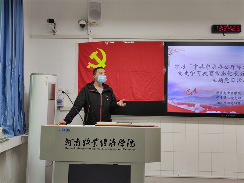 为促进我院学生党员了解最新时事政策,紧跟时代步伐,77779193永利官网学生第三党支部于4月14日中午12时20分在A114开展了以“李克强总理作的《政府工作报告》”及中共中央办公厅印发的《关于推动党史学习教育常态化长效化的意见》为学习内容的主题党日活动,学生第三党支部书记胡可鑫老师、组织委员杨雪老师及支部全体在校学生党员参与了此次会议。