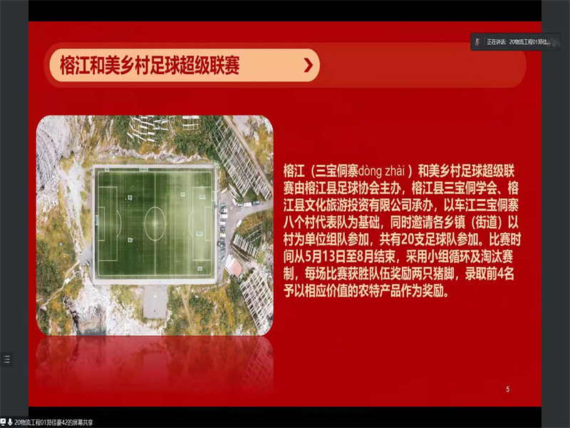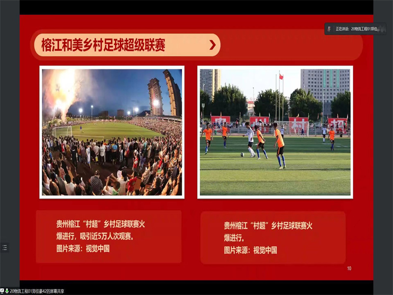 首先,郑佳豪同志宣布了此次主题党日活动的主题,并且向大家介绍了榕江和美乡村足球超级联赛相关情况。随后,通过介绍榕江足球的历史,大家明白了榕江足球超级联赛火遍全网、吸引大批人关注是有很大历史原因的,又联系到其发展的时代背景,展现了当地人强烈的家乡责任感和传承精神。紧接着,石佳瑶、张旭博、何佳培等在校生党员分享了自己对榕江和美乡村足球超级联赛发展的看法和感悟。各位在校生党员的精彩发言体现了他们对此事件的充分认识,以及他们乐于思考、善于总结的卓越品质。最后,张排杰老师做出总结发言,首先对此次主题党日活动的精神进行概括分析,指出了榕江和美村超的发展历程具有很重要的学习意义,值得我们深入学习,也希望各位学生党员通过在学习过程中能够收获启示。各位学生党员都积极参与其中,营造了良好的活动氛围。