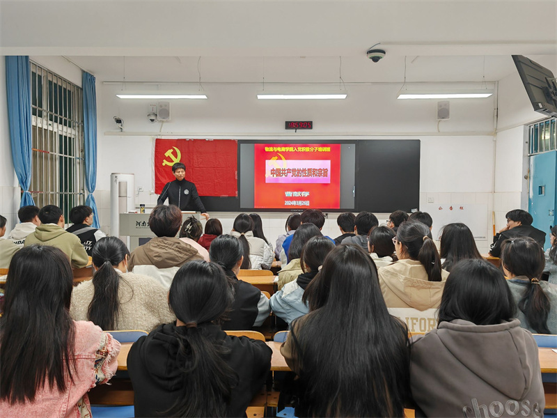 党课伊始,曹院长提出党的性质和宗旨的意义,他分别从外国对中国共产党的看法及十年来中国共产党经历的三件大事等方面详细解读了党的宗旨,并举例了自己作为党员为农村脱贫攻坚所做的事,极大地诠释了党的宗旨是全心全意为人民服务,曹院长以自己的亲身经历让入党积极分子更好地理解了党的宗旨。随后,曹院长指出中国共产党是中国工人阶级的先锋队,并介绍了中国共产党的阶级性和先进性,要求入党积极分子必须要旗帜鲜明地驳斥关于马克思主义理论的错误言论。党课最后,曹院长提出大学生应当认真规划大学生活,要有良好的道德情操,还提出了一些身为入党积极分子不应该做的事,并呼吁入党积极分子要积极向党组织靠拢,争取早日成为一名合格的共产党员。