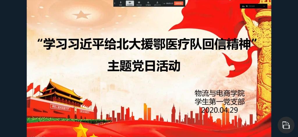 活动伊始,由各支部支部书记领读习近平总书记给北大援鄂医疗队回信内容并发表讲话。在领读回信时,各支部支部书记向大家着重强调习近平总书记在信中所说的一句话:“青年一代有理想、有本领、有担当,国家就有前途,民族就有希望。”并希望在座的各学生党员向在这次抗击疫情中身先士卒的人们学习,以他们为榜样,在艰苦奋斗中磨炼意志,在努力为人民服务的实践中找到自己的价值,树立远大的理想抱负,为人民服务。接着,各学生党员开始讨论交流,谈论自己在学习“习近平总书记给北大援鄂医疗队回信精神”后的心得感悟。各学生党员谈到:在抗疫期间,各行各业始终坚守岗位、恪尽职守,为抗议工作奉献自己的一份力量,自己身为学生党员,更要从小事做起弘扬正能量,抓住为人民服务的机会,为社会服务,为国家做贡献。最后,本次主题党日活动在主持人的结束语中落下帷幕。
