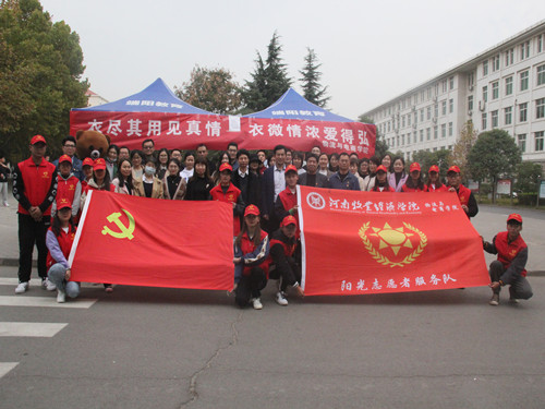 我院志愿者将捐赠的衣服摆放整齐,穿戴志愿者衣服,佩戴志愿者帽子,以饱满的精神迎接于书记、曹院长与各位老师的到来。我院领导对此次活动十分重视并给予了极大的支持与鼓励,到场的领导和老师们都纷纷捐赠衣物,献出自己的爱心,为贫困地区送去一份温暖、一份关爱。随后,于书记、曹院长及老师们与志愿者们进行沟通交流,进一步了解本次活动,同时也为后期活动给出了一些指导和建议,并表示他们会持续关注捐衣活动的后续情况。最后,大家集体合影留下这美好的一刻。我院领导和老师们用实际行动表达了他们对社会的一份关爱及牵挂,激励和引导了我院学生献出自己的爱心,为学生树立了良好的榜样。