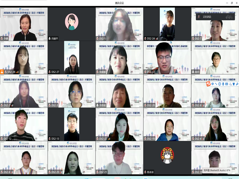 2022年11月19日,物流与电商学院通过腾讯会议举行了2023届电子商务本科专业毕业论文(设计)开题答辩,本次答辩会共计110名本科毕业生,分两个小组进行答辩。答辩小组组长分别由电子商务教研室主任殷猛博士、电子商务实验室主任肖丽平博士担任。