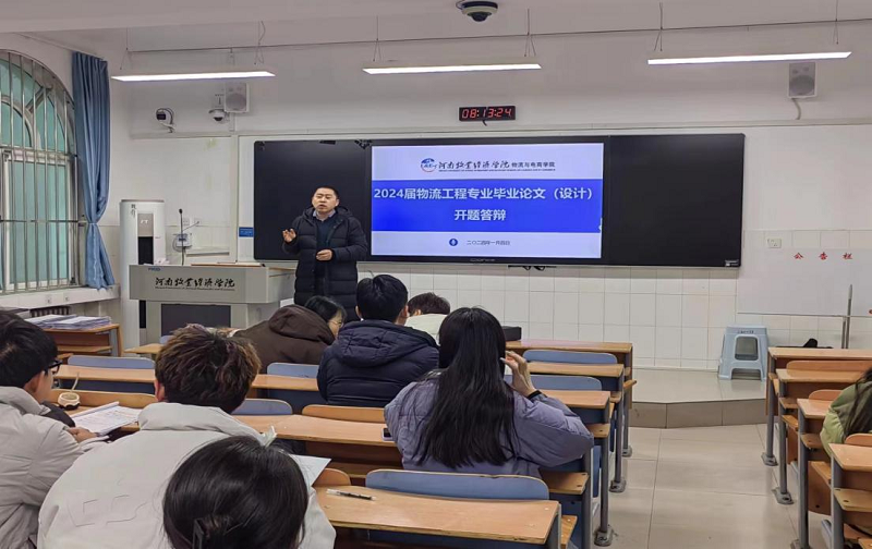 2024年1月4日,我院物流工程专业首次本科毕业论文(设计)开题答辩在英才校区教学楼A座YA114教室顺利举行。本次答辩由物流工程教研室主任李金峰老师担任答辩组组长,物流工程专业教师张腊梅、薛珂、韩启昊、卢红奇组成答辩委员会,共有63名物流工程专业本科生参加答辩,为体现公平、公正的原则,我院本次毕业论文(设计)开题答辩工作采用匿名答辩的方式进行。