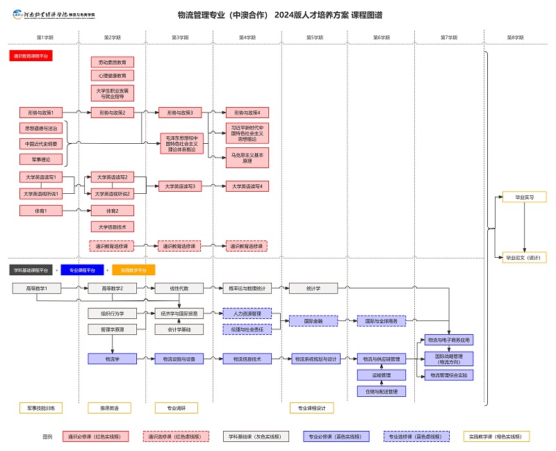 物流管理(中澳合作办学项目)2024版人才培养方案课程导图(物流管理教研室主任刘博老师绘制)
