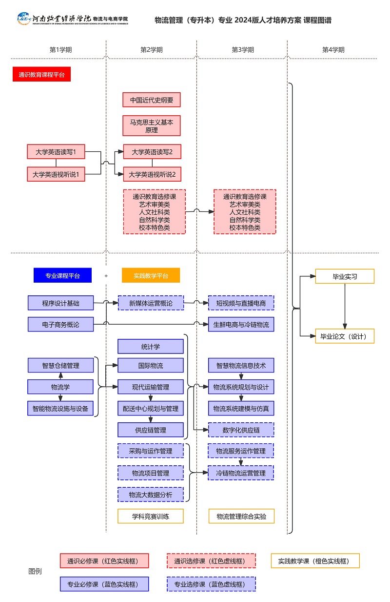 物流管理(专升本)专业2024版人才培养方案课程导图(物流管理教研室主任刘博老师绘制)