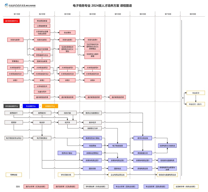 电子商务专业2024版人才培养方案课程导图(电子商务教研室主任殷猛老师绘制)