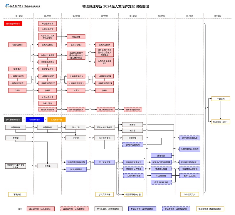 物流管理专业2024版人才培养方案课程导图(物流管理教研室主任刘博老师绘制)