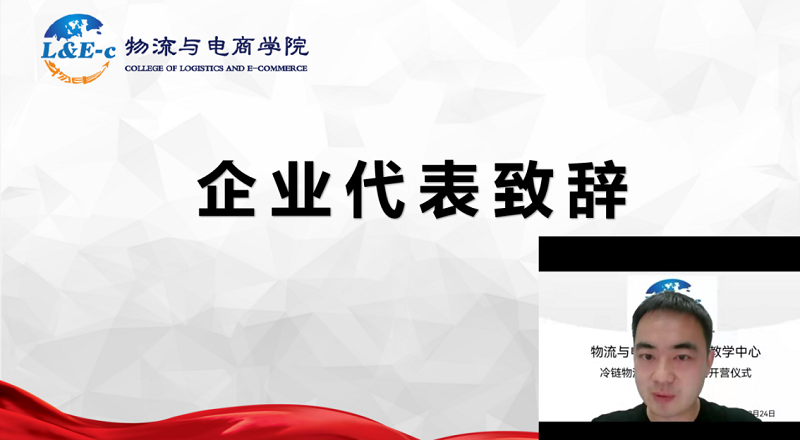 本次特训营的产业合作方北京视趣教育科技有限公司教学产品研发总监、产品咨询顾问林海涛林总发言,他表示很荣幸此次加盟物流于电商学院举行的第二期“冷链物流特训营”,希望通过公司的云平台,云教学,云技术等手段,来不断完善此次特训营,希望能够给同学们带来良好、丰富的学习体验。