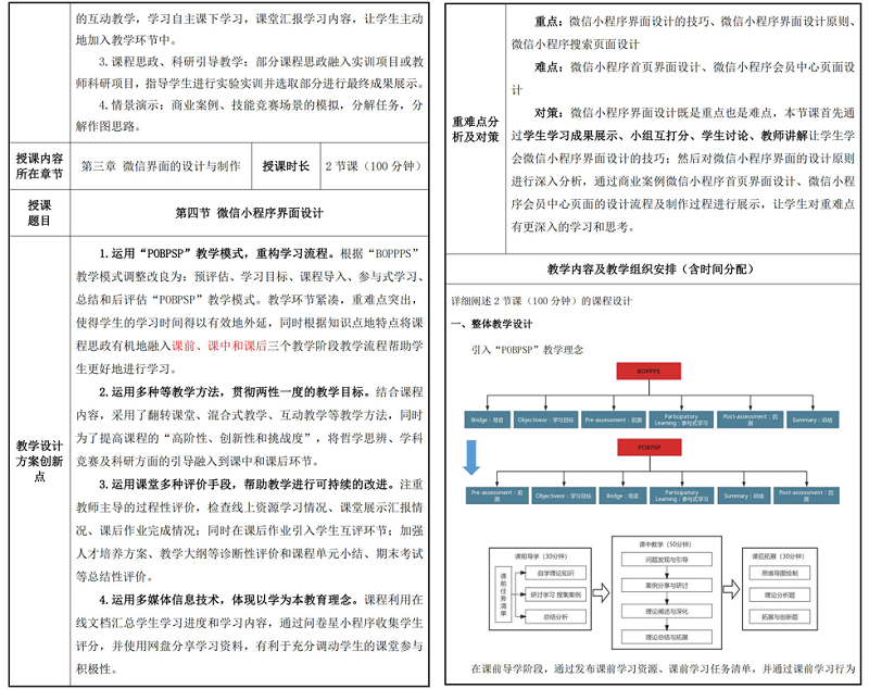 我院全体任课教师参加了此次教学设计创新大赛,参赛教师将“学生中心”“课程育人”的教学理念充分融入教学设计,其中,杨萌老师采用了BOPPPS有效教学法、任务驱动法、案例教学、探究教学、研讨教学、混合教学等多种教学方法完成了“供应链弹性理论Supply Chain Resilience Theory”部分的教学设计,同时通过微信投票小程序进行课堂反馈,从而改进学习效果;张朦朦老师在“微信小程序界面设计”的教学设计中,结合课程内容,采用翻转课堂、混合式教学、互动教学等教学方法,运用“POBPSP”教学模式重构学习流程,注重教师主导的过程性评价,加强教学大纲等诊断性评价和课程单元小结、期末考试等总结性评价,帮助教学进行可持续的改进;薛珂老师采用“当堂对分、多种教学方式融合”的方式开展了“物流节点设施布局规划”的教学,强调个性化内化吸收,以混合式教学强调线上下融合,运用成果导向、任务驱动,强调竞教结合,强化探究合作,以提升学生灵活运用知识解决企业实际问题的能力;李金峰老师课基于“课前学习→案例引入→学生讨论→ 教师点评→教师总结→课后应用”的教学思路,运用布鲁姆的教学目标分类理论和美国缅因州国家训练实验室提出的学习金字塔理论完成了“核密度分析”部分的教学思路设计;“PHP开发基础”的教学设计中,殷猛老师运用任务驱动、案例研讨、问题探究和线上线下混合等多方法协同、多过程培养,在思辨研讨和实践中提升学生能力,集合合作学习模式、现象分析模式和发现式教学三种模式综合的混合式教学,全过程、多阶段教学过程设计来提高教学质量;张睿智老师基于学生的核心职业能力分析、有效的能力驱动及适宜的行动导向来重塑教学内容,更注重过程性教学,激发学生参与性,利用随堂练等线上实验平台,提高趣味性,以能力考核为主,提高评价的多元性来完成“基于BOPPPS理念的《仓储管理》理实一体化教学设计与评价”课程设计……精彩纷呈的教学设计充分展现了我院教师扎实的教学功底和较高的教学水平。经学院专家组评审,杨萌和张朦朦两位老师获得一等奖,薛珂、李金峰、殷猛、张睿智四位老师获得二等奖4项,杨玲、王志辉、任林洁、王俊涛、孙红霞、肖丽平六位老师获得三等奖6项,滕光富、周俊颖等部分老师获得优秀奖。