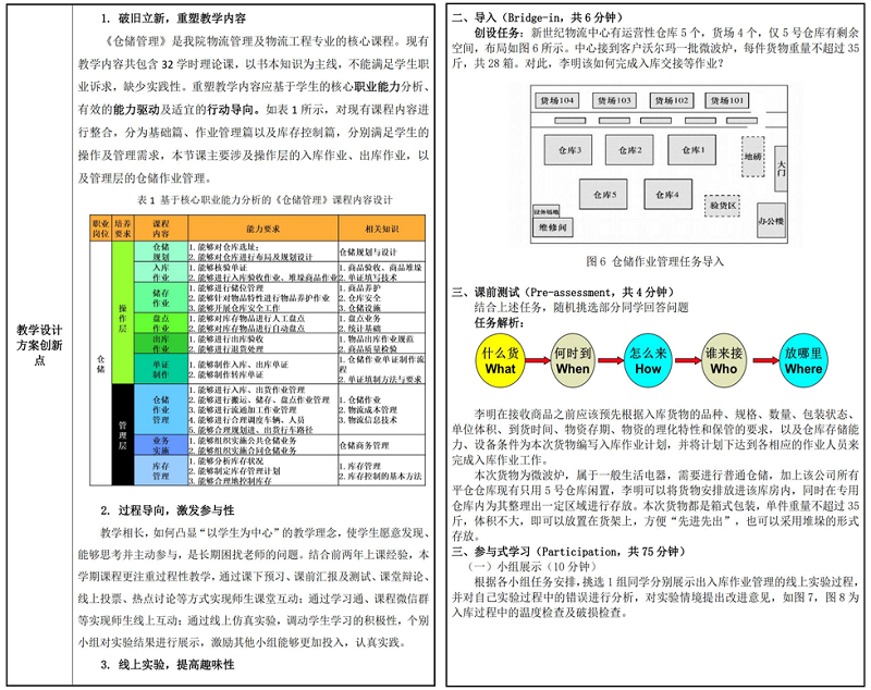 图6 张睿智老师“基于 BOPPPS 理念的《仓储管理》理实一体化教学设计与评价”教学设计方案