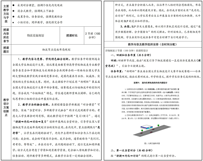 图3 薛珂老师“物流节点设施布局规划”教学设计方案