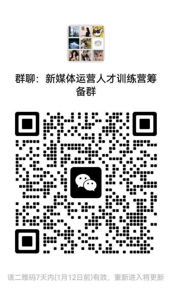 附:“新媒体运营人才训练营交流群”二维码