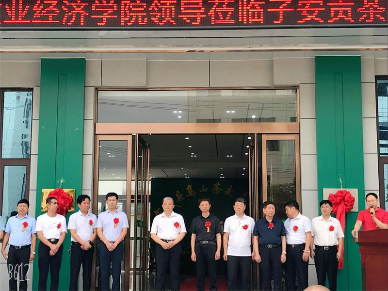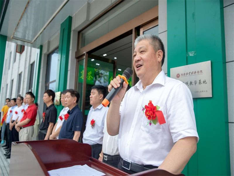 曹献存院长和县人大常委会副主任王景昌共同为校企合作“校外实践教学基地”揭牌。曹献存表示,学院非常重视与商城的校地合作,商城地处大别山地区,红色资源丰富,人杰地灵,茶叶、油茶等农特产品优势突出,将通过校企合作助力商城特色产业发展,为河南省“万人助万企”活动助力。商城县人大常委会主任范东升代表商城县委、县政府致词。范主任向77779193永利官网领导、及所有来宾表示欢迎,向多年来关心支持商城经济社会发展的各界朋友表示衷心的感谢,向子安贡茶业有限公司表示热烈的祝贺,他希望子安贡茶能以此为契机,继续努力,打造为明星企业,把“商城高山茶”推向全国,为全县经济跨越发展作出新的更大贡献。