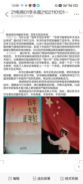 活动伊始,心理教育活动中心干事向同学们介绍了本次活动的目的及要求,并详细讲解了活动流程。随后,参与读书分享的同学根据活动要求上交了作品,并对书名及内容做了简单的介绍,分享了所阅读书籍的感悟。同学们的阅读感悟各有千秋,从中可以真切感受到参与活动的同学对经典文学作品的热爱,以及书籍带给他们的力量。活动结束后心理教育活动中心干事评选出部分优秀作品张贴至红色花蕊展览处,希望全校同学感受到书籍的力量和魅力并引导其向爱书、敬书、懂书的同学学习。