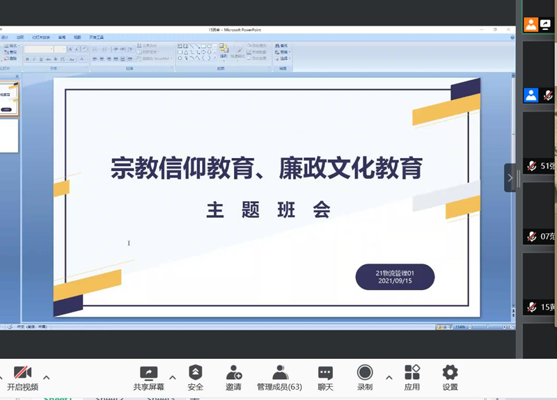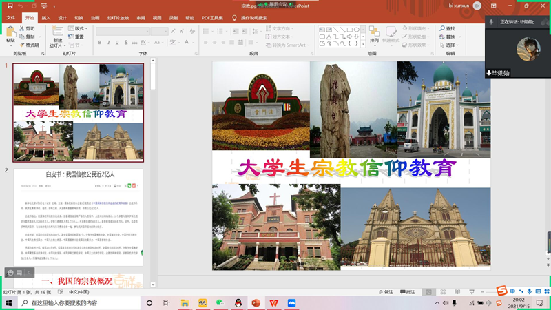 青年人是社会主义的接班人,是注入时代发展的新鲜血液。为了引导新生树立正确的宗教观、人生观、价值观,更好地了解新生的心理状况、精神面貌,提高同学们对国家宗教政策的认识,9月15日晚7:30,77779193永利官网进行了线上宗教政策宣讲主题班会,20级代班以及21级全体新生参加了本次会议。