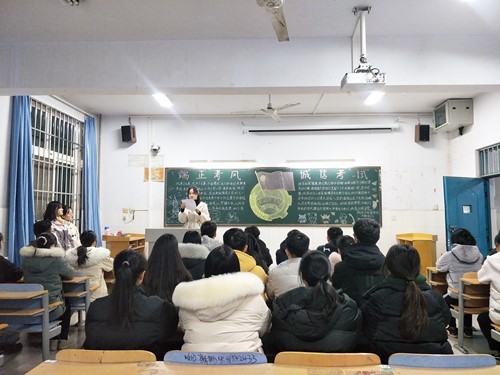 团课伊始,主持人首先介绍了本次主题团课的举办目的,紧接着各班举行了有关“端正考风,诚信考试”的演讲。孟子有云:车无辕而不行,人无信则不立。诚信是最质朴的品质,它不像勇敢那样受人钦佩,也不像聪明那样让人羡慕,它是那样的平淡,那样的质朴,默默的完美着我们的人格,净化着我们的灵魂。同学们讲述了诚信考试的重要性,并谈到对考试违纪行为的批判,呼吁大家要遵守考纪,诚信考试。随后各班演讲人对大家进行了提问,发言的同学均表示一定会积极备考,诚信考试。现场气氛十分严肃,同学们认真听着演讲,心中也对诚信考试有了更全面的了解和认识。最终,本次团课在热烈的掌声中圆满结束。