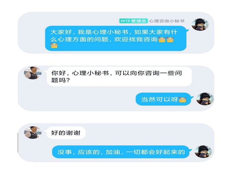 在“心理咨询”活动中,班级内会推选出一名“心理咨询助手”帮助大家解决心理方面的问题,享受抗疫时光,享受健康生活。