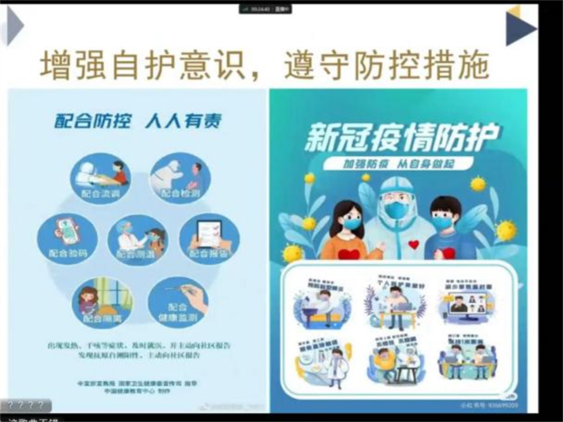 团课伊始,一首诗朗诵《至暗散尽,星河依旧长明》使同学们齐心抗疫的情绪高涨。接着,主持人带领同学们观看了国家、地方疫情防控法律法规的科普视频,使同学们深刻理解了国家坚持“动态清零”政策的科学性和必要性,树立坚决抗疫的旗帜与信心。而后,主持人为同学们讲解了校园防疫指南及防控措施,这提醒了身为当代青年的我们,科学面对疫情,增强自护意识,承担防疫责任,自觉遵守地方和学校疫情防控措施。最后,全体同学起立宣誓:“不信谣,不传谣,坚决抵制谣言。”