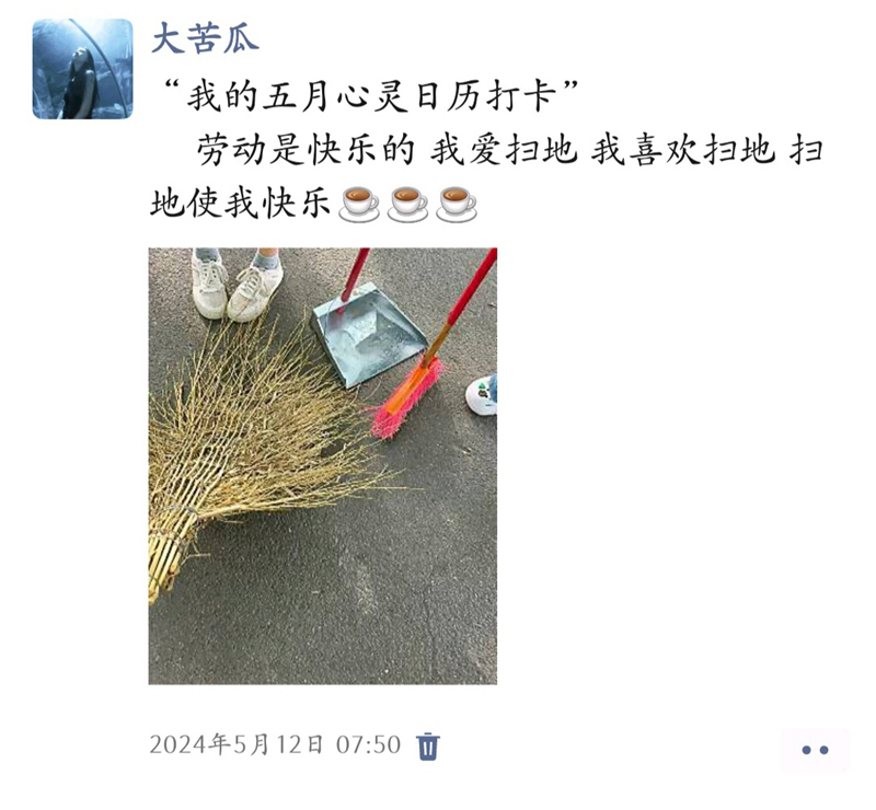 此次“我的五月心灵日历”心理健康打卡活动的展开,展现出我院对学生心理健康教育的重视。未来我院将继续举办更多形式多样的心理健康活动,为构建更加和谐、健康的校园氛围而努力!