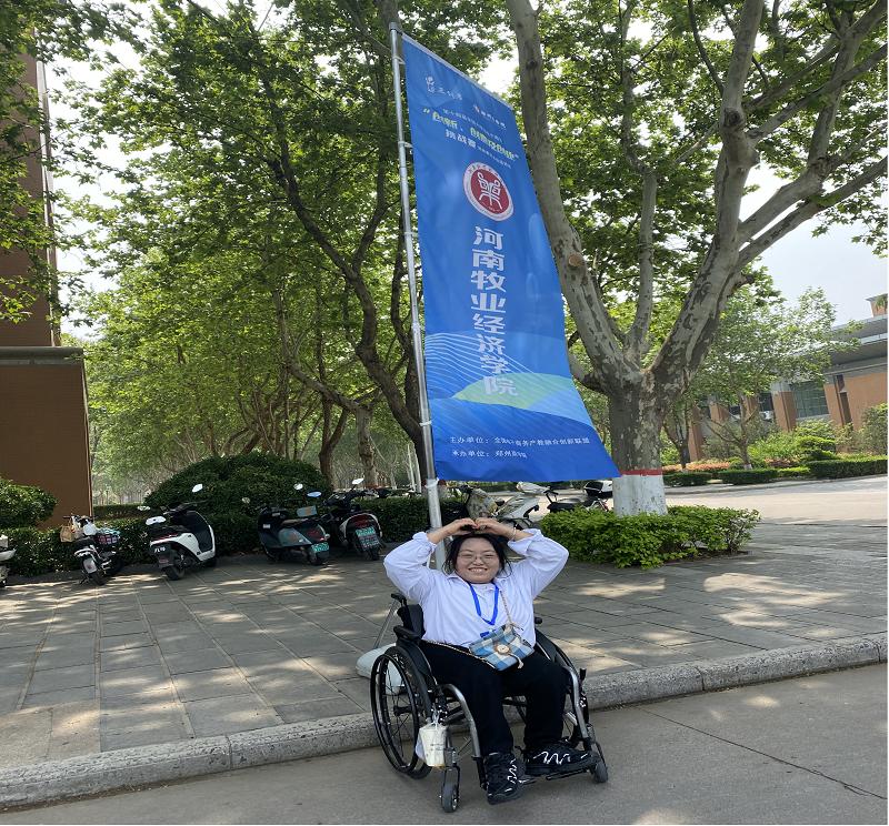 物流与电商学院学子2022级电子商务专业的聂盼盼是英才校区受师生关注的一个坐着轮椅生活在校园里的学生,在她入学报到被师生接进校园时,她会不自觉的逃避他人的目光,与人交流声音小,不自信,因为她心里,感觉自己虽然经过不懈努力考入了河南牧业经济学院这所大学,但因为自己的身体原因,她从小就认为自己和别人是“不一样”的。